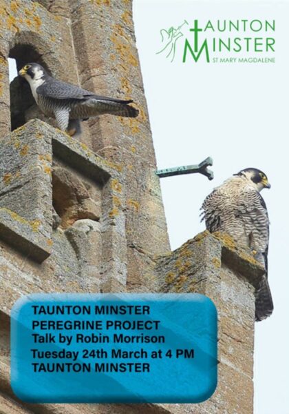Taunton Minster is delighted to host a special illustrated talk by Robin Morrison, exploring the Taunton Minster Peregrine Project and the extraordinary lives of the peregrine falcons that have made the Minster tower their home.